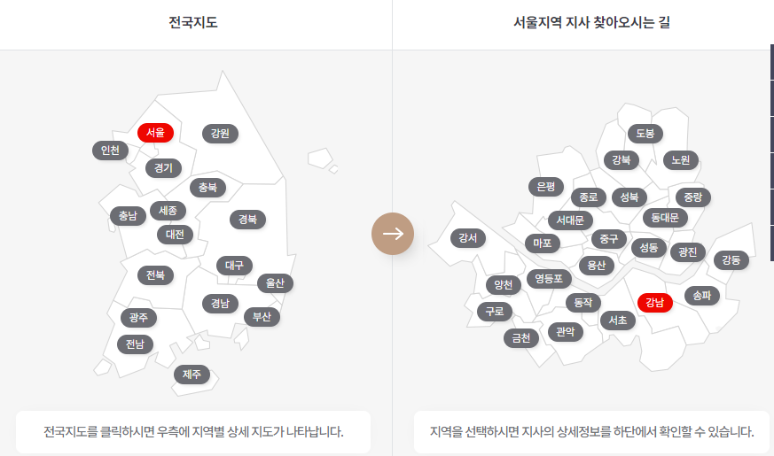 해당 지사의 담당자별 전화번호 및 팩스번호도 참고해보시기 바랍니다.