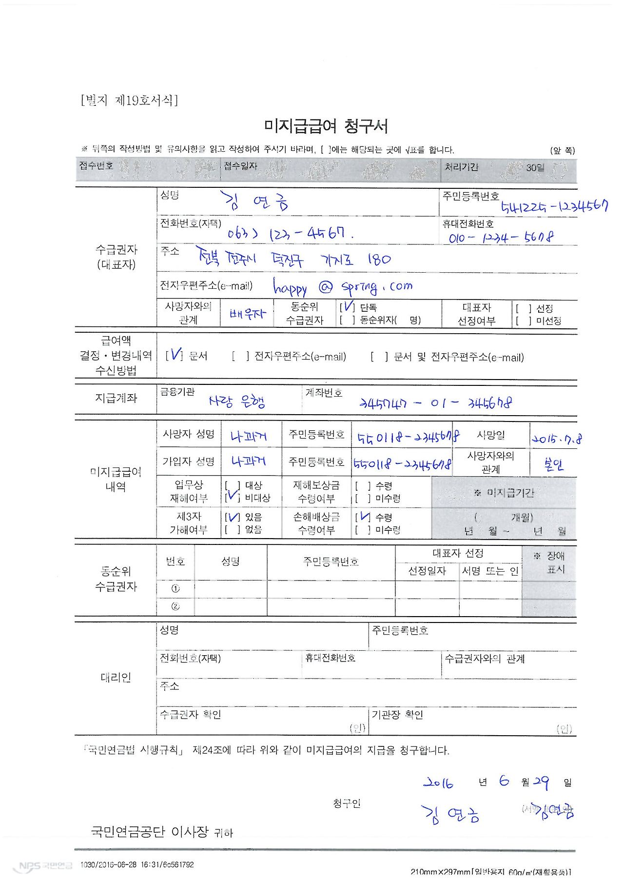 국민연금법 시행규칙24조에 따라 위와 같이 미지급 급여의 지급을 청구합니다.