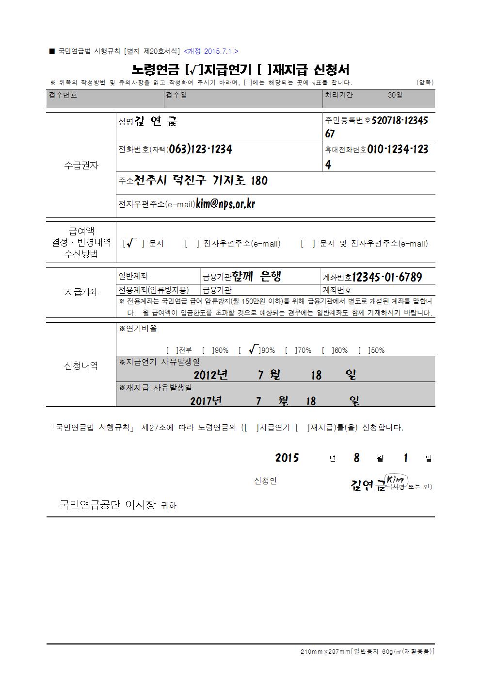 노령연금 지급연기/재지급 신청서 작성방법도 살펴보시면 좋겠습니다.