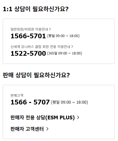 판매 상담의 경우엔 1566-5707 지마켓 고객센터 전화번호입니다.
