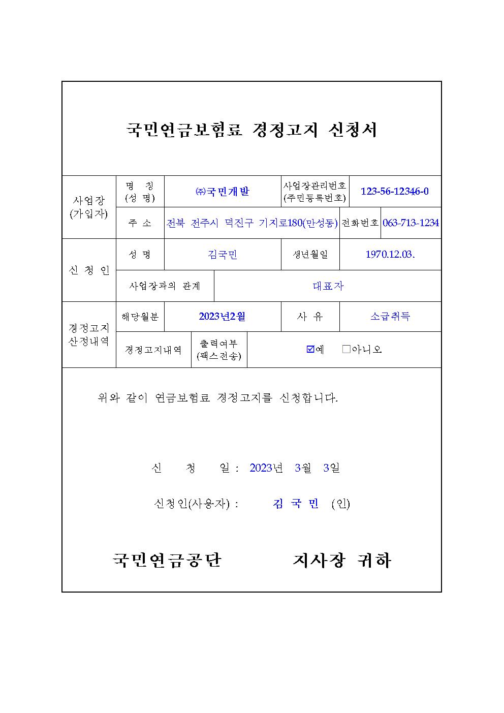 국민연금공단 경정고지 신청서 다운로드