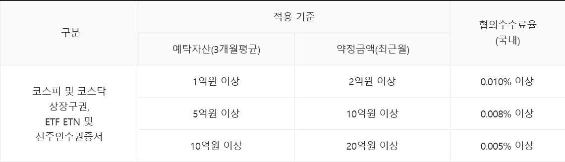 적용기준 : 3개월 월평균 예탁자산, 약정금액 등을 종합적으로 고려하여 협의 가능