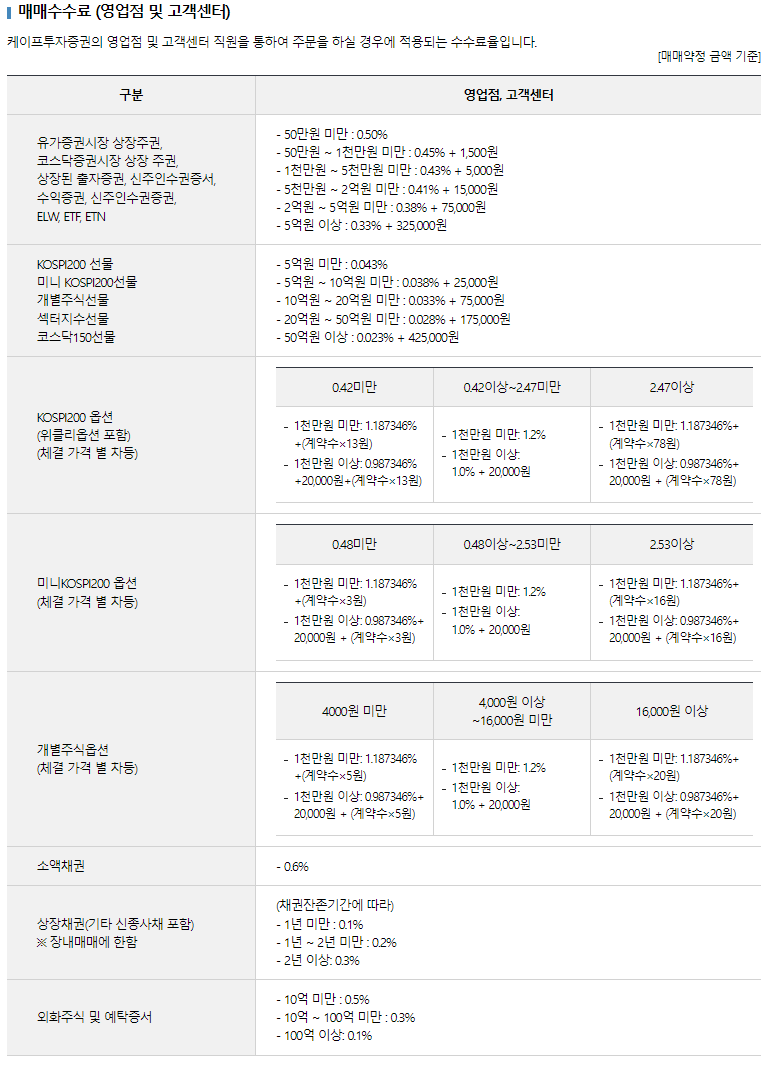 선물옵션 만기일 권리행사에 따른 자동청산분에 대해서는 오프라인(영업점 및 고객센터)수수료가 적용됩니다.