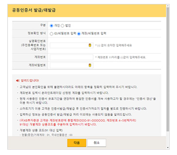 발급구분을 선택 후 본인확인을 위한 정보를 입력해주세요.