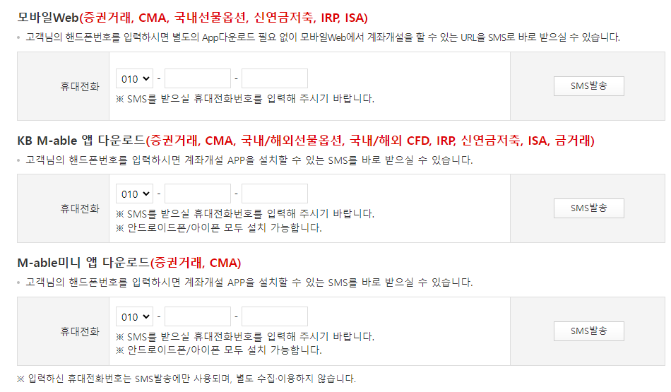 계좌개설을 할 수 있는 URL을 SMS로 바로 받으실 수 있습니다.