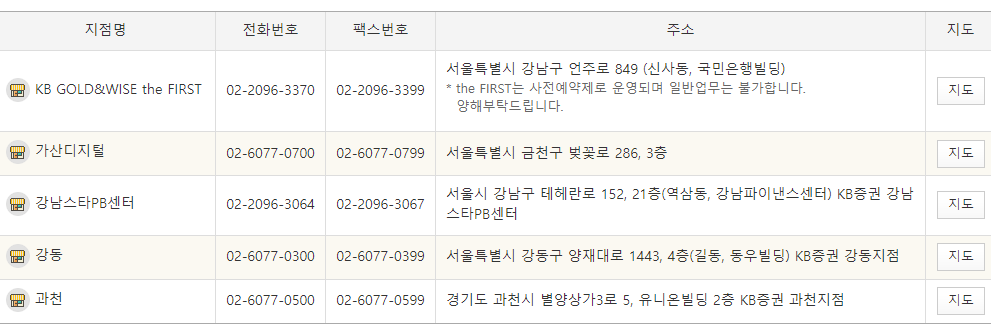 몇개 일부 지점에 대한 번호를 알려드리려고 합니다.