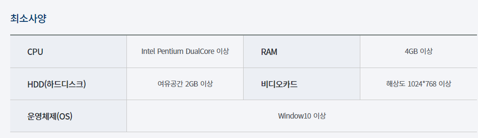 최소 사양은 위와 같이 되어야 하니
