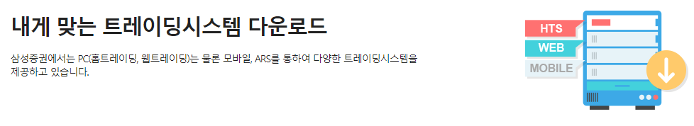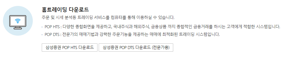 아래에서 삼성증권 HTS 다운로드 버튼 만들어두었으니