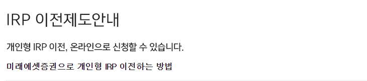 미래에셋 IRP 이전방법