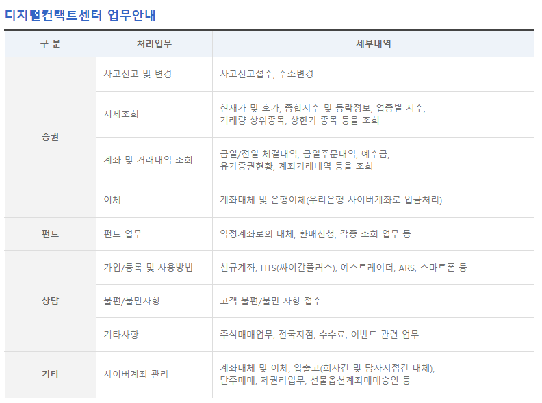 콜센터에서 이런 업무들을 처리할 수 있습니다.