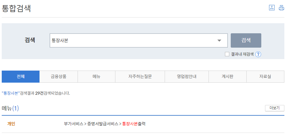 "통장사본"을 검색한다.