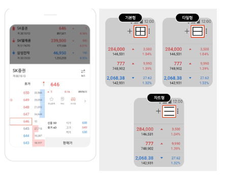 편리해진 관심종목 관리와 3가지 타입의 보기 방식을 선택할 수 있습니다.