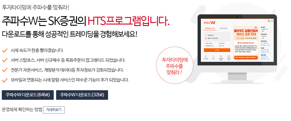 바로 SK증권 MTS HTS 다운로드 가능하니