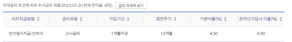 최저 연 4.5%~최고 연 6.00%로 꽤나 금리가 높은 편입니다.