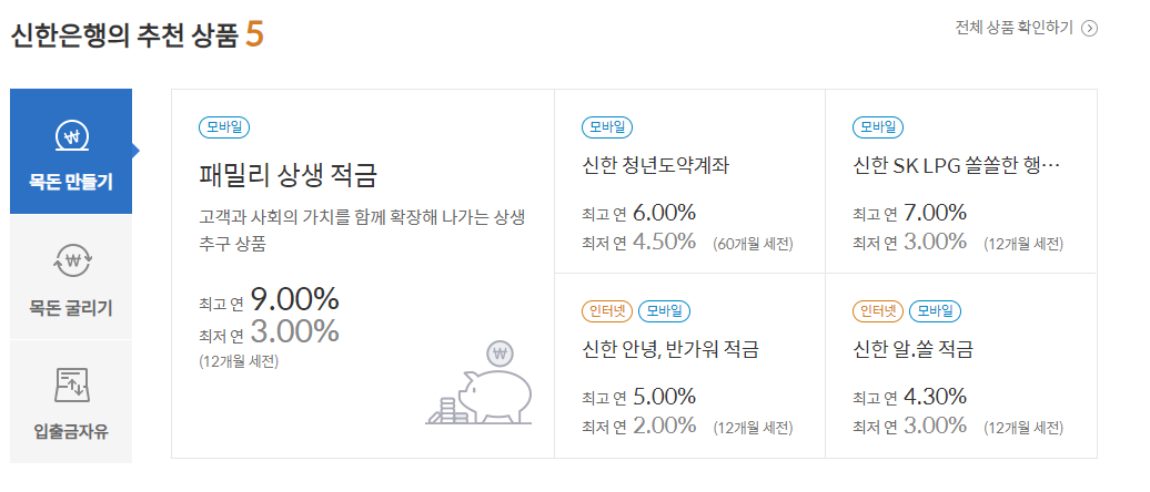 신한은행의 추천 예금금리는 5개가 있는데요.