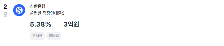 (2) 2등은 신한은행 쏠편한 직장인 비슷한 상품입니다.