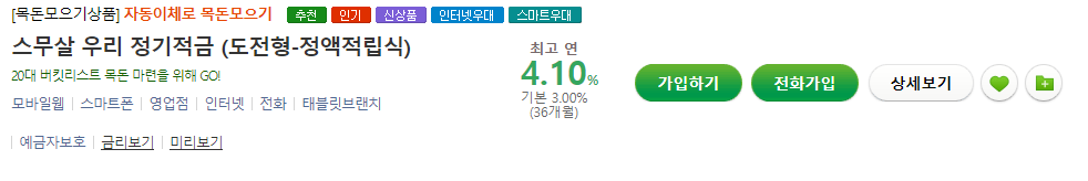 20대 버킷리스트 목돈 마련을 위해 하는 상품이라고 합니다.