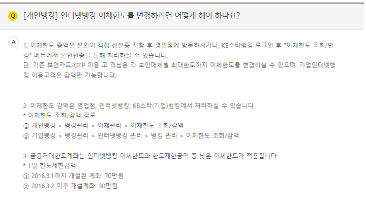 오늘은 국민은행 이체한도 증액방법에 대해서