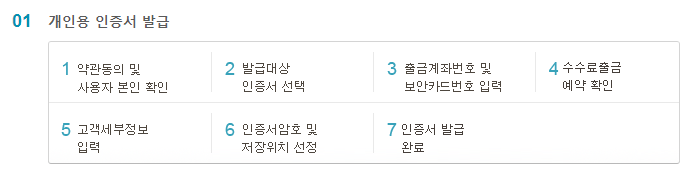 아래 [개인용인증서발급 바로가기] 버튼을 클릭하고 순서에 따라 인증서를 발급받으세요.