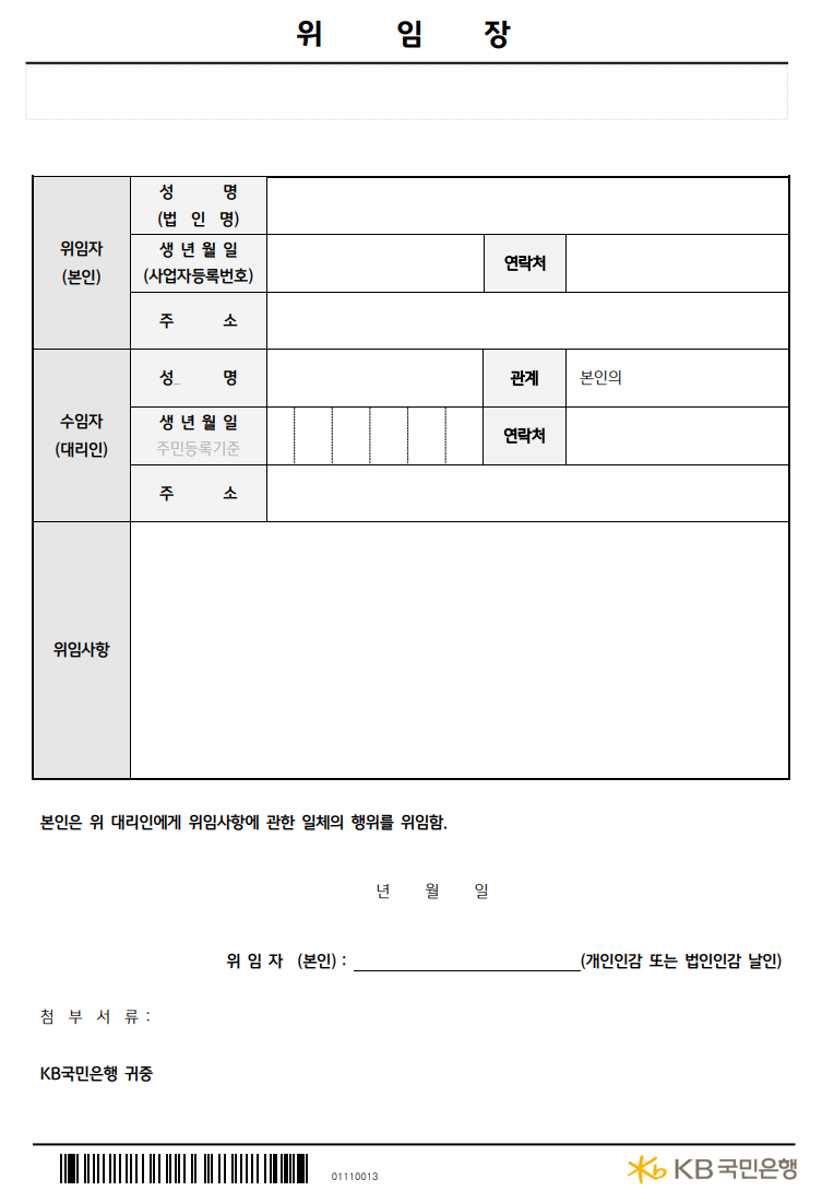 지금 즉시 국민은행 위임장 방문해보시기 바랍니다.