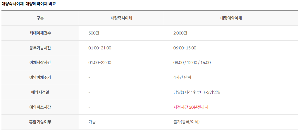 (2) 대량이체 서비스