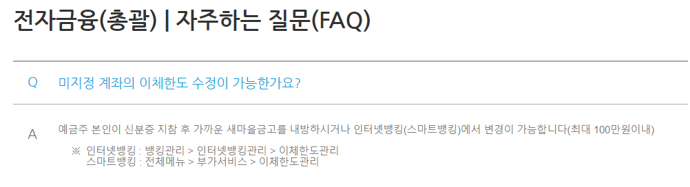 오늘은 새마을금고 인터넷뱅킹 이체한도에 대해서