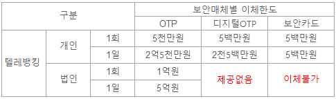 OTP가 제일 이체한도가 많이 나오니