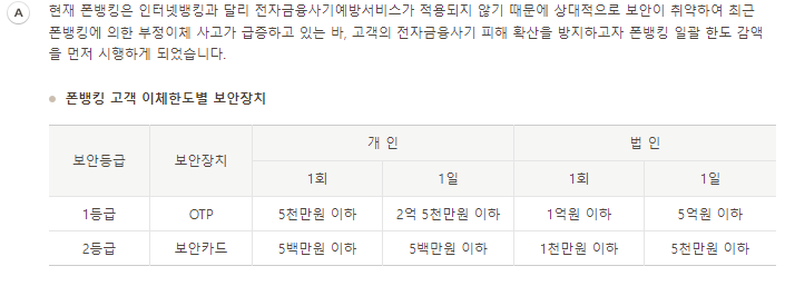 고객의 전자금융사기 피해 확산을 방지하고자 폰뱅킹 일괄 한도 감액을 먼저 시행하게 되었습니다.