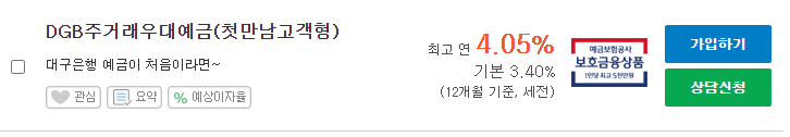 (1) DGB주거래 우대예금 - 최고 연 4.05%입니다.