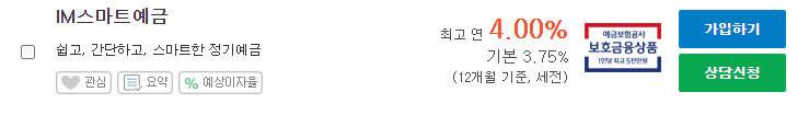 (2) IM스마트예금 - 금리는 4.00%입니다.