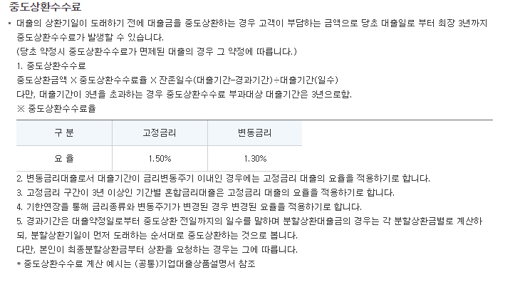 중도상환 수수료는 다음과 같습니다.