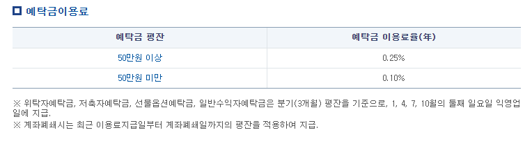 ※ 계좌폐쇄시는 최근 이용료지급일부터 계좌폐쇄일까지의 평잔을 적용하여 지급.