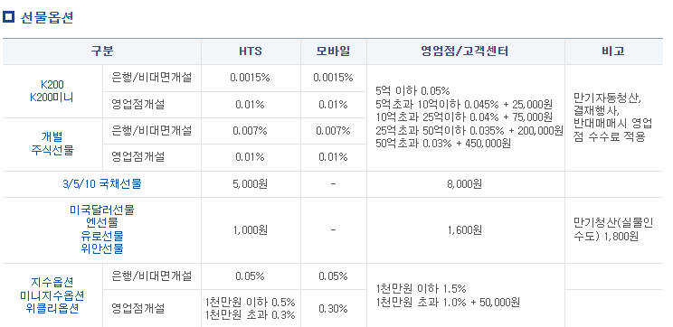 선물옵션 수수료