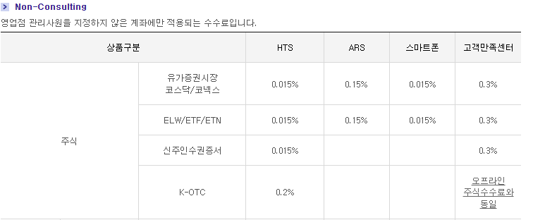 영업점 관리계좌인 경우, 반대매매 및 선물옵션 만기청산시에는 오프라인 수수료율이 적용됩니다.