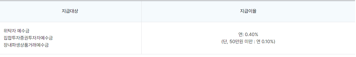 또한 은행연계계좌의 예탁금이용료율은 다음과 같은데요.