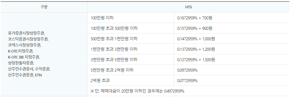 - K-OTC : 0.0999187% (거래 수수료 : 0.099% + 예탁결제원 수수료 : 0.0009187%)