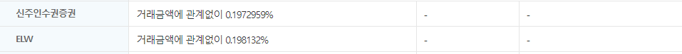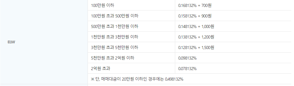 또한 대신증권 ELW 거래 수수료율은 다음과 같은데요.
