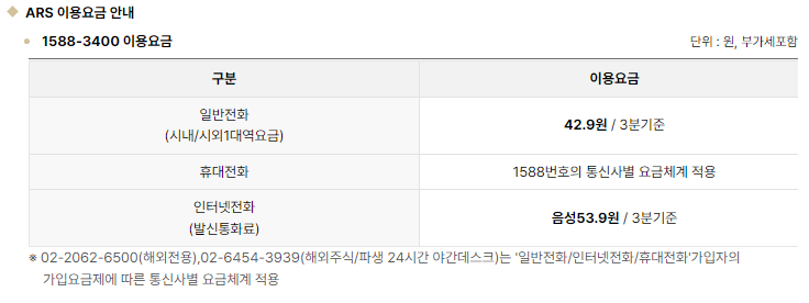 1588-3400 이용요금의 경우 위과 같습니다.