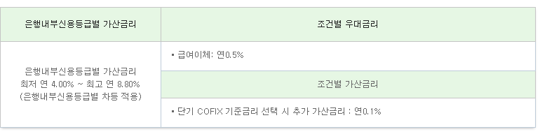 단기COFIX(연 3.95%) 기준: 최저 연 7.55% 부터 ~ 최고 연 12.85%