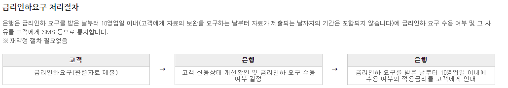 ※ 은행은 금리인하를 요구하는 고객에게 신용상태 개선을 확인하는 데 필요한 자료의 제출을 요구할 수 있으며,