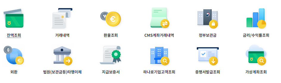 농협 기업 인터넷뱅킹은 이런 것들이 있습니다.