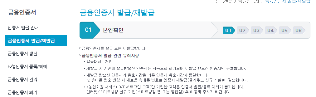농협 금융인증서 발급방법