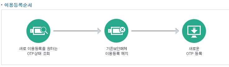 기존 보안매체를 이용등록 해지하신 경우 새로운 보안매체 또는 기존 보안매체를 재등록 해야 거래가 가능합니다.