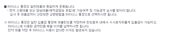 ■ 마이너스 통장도 일반대출과 동일하게 운용됩니다.