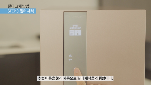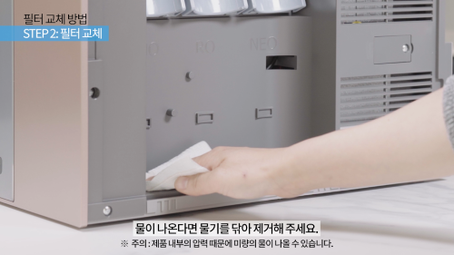 ※ 반드시 전원이 켜져있는 상태에서 필터를 교체해주세요. 전원이 꺼져있으면 누수의 위험이 있습니다.