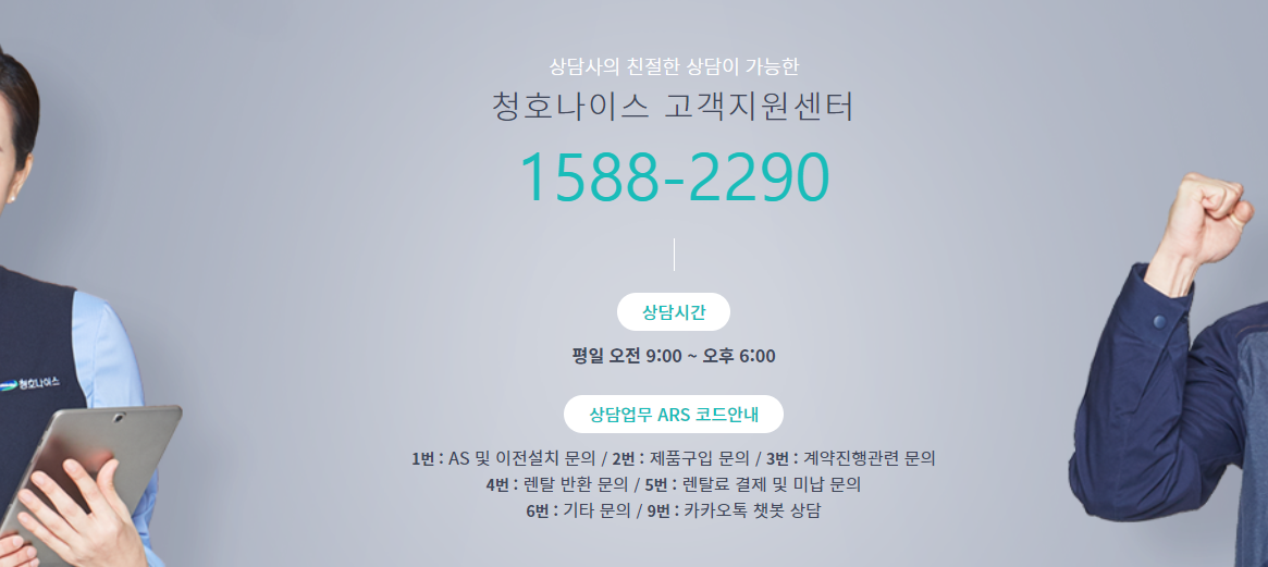 청호 나이스 고객센터 전화번호는 1588-2290입니다.