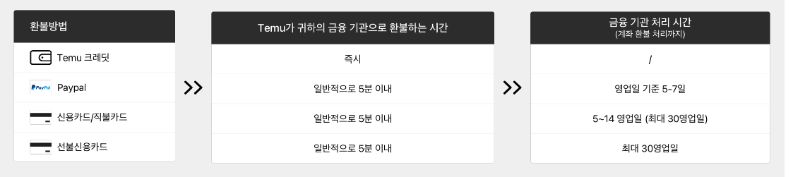 TEMU 환불일정