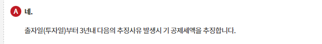 1. 추징사유 : 출자일 or 투자일로부터 3년이 경과하기 전에