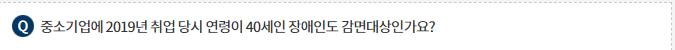 중소기업에 2019년 취업 당시 연령이 40세인 장애인도 감면대상인가요?