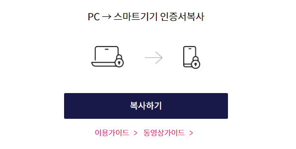 인증서 가져오기 작업을 위해서는 PC(인증서가 있는)와 스마트폰이 준비된 상태에서 동시에 작업하셔야 합니다.